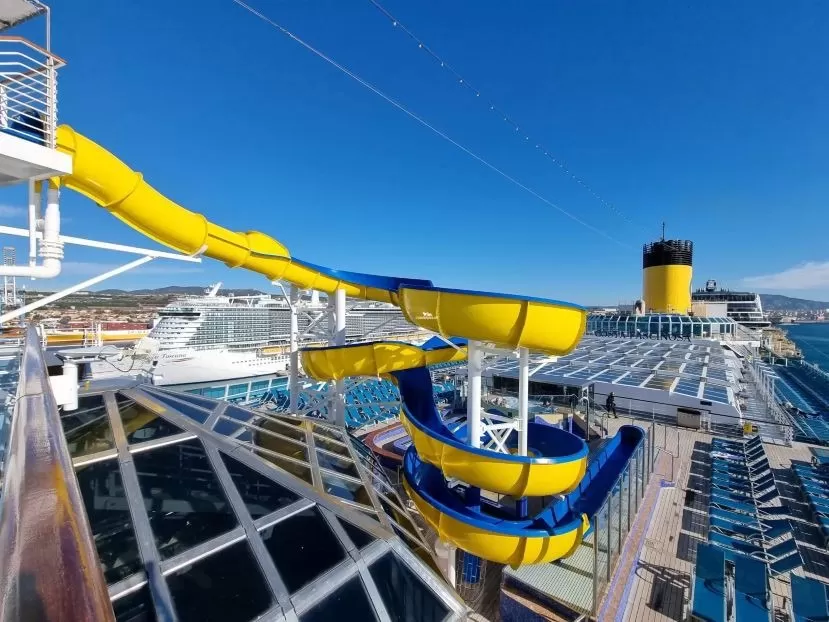 Club Favolosa ve Samsara Restoranı da dahil olmak üzere 5 restoranı,13 barı,5 Jakuzisi, 2 ‘si açılır kapanır cam tavanlı olmak üzere 4 yüzme havuzu, Yüzme Havuz katlarında bulunan Dev Ekran Televizyonları, Çocuk havuzu ve su kaydırağı, çok amaçlı spor parkuru,4D Sinema salonu, Grand Prix ve Golf Simülatörü, Play Station Oyun Salonu,3 katlı Tiyatro Salonu, Kütüphanesi, Alışveriş Merkezi, Casino, Diskosu ve 6.000 m2’lik 2 katlı özel Samsara Spa’sı ile yolcularına hizmet veren Avrupa’nın en büyük İtalyan bayraklı gemisi ünvanını taşımakta.