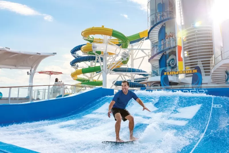 * 10 metre genişliğinde ve 12 metre boyundaki FlowRider® sörf similatörü ile yolcular denizin üzerinde de sörf yapabilecekler..