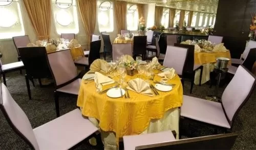 Gemilerdeki yemekler dünyaca ünlü aşçılar tarafından hazırlanmaktadır. Kahvaltı ve öğle yemekleri açık büfedir. Akşam yemekleri ise seçmeli set menü olup seçenekler oldukça fazladır. Restoranlarda her türlü damak zevkine hitap eden seçeneklerle zenginleştirilmiştir. Fransız, İtalyan, Uzakdoğu, Akdeniz ve diğer dünya mutfaklarından lezzetlerin sunulduğu, her gün ayrı seçenekleri olan menüler mevcuttur. Bir çok gemide, 24 saat kabin servisi vardır. Gemi seyahatlerinde ayrıca farklı bir unsur olarak akşam yemeklerinizde iki tür oturum seçeneğinize sunulmakta ya da hiçbir kısıtlama olmadan Freestyle Cruising diye adlandırılan seçenek bulunmaktadır.* Yemekler esnasında açık su, çay, kahve ikram olarak ücretsiz olarak verilmekrtedir. Bazı gemi firmaları bitki çayları, basit meyve kokteli ile bu seçenekleri zenginleştirmiştir . *Akşam yemeğinin oturumlu ya da serbest olma özelliği gemiden gemiye farklılık göstermektedir.
