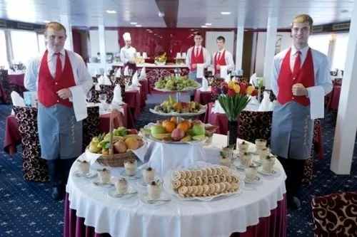 Gemilerdeki yemekler dünyaca ünlü aşçılar tarafından hazırlanmaktadır. Kahvaltı ve öğle yemekleri açık büfedir. Akşam yemekleri ise seçmeli set menü olup seçenekler oldukça fazladır. Restoranlarda her türlü damak zevkine hitap eden seçeneklerle zenginleştirilmiştir. Fransız, İtalyan, Uzakdoğu, Akdeniz ve diğer dünya mutfaklarından lezzetlerin sunulduğu, her gün ayrı seçenekleri olan menüler mevcuttur. Bir çok gemide, 24 saat kabin servisi vardır. Gemi seyahatlerinde ayrıca farklı bir unsur olarak akşam yemeklerinizde iki tür oturum seçeneğinize sunulmakta ya da hiçbir kısıtlama olmadan Freestyle Cruising diye adlandırılan seçenek bulunmaktadır.* Yemekler esnasında açık su, çay, kahve ikram olarak ücretsiz olarak verilmekrtedir. Bazı gemi firmaları bitki çayları, basit meyve kokteli ile bu seçenekleri zenginleştirmiştir . *Akşam yemeğinin oturumlu ya da serbest olma özelliği gemiden gemiye farklılık göstermektedir.