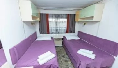 Kabin Donanımları:Sıcak/Soğuk havalandırma, Banyo (Lavabo,duş ve tuvalet),Elektrik priz (220V)Gardrop, Mini buzdolabı, Tv