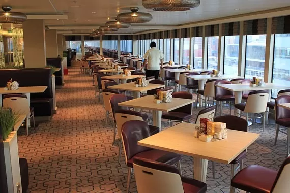 Gemilerdeki yemekler dünyaca ünlü aşçılar tarafından hazırlanmaktadır. Kahvaltı ve öğle yemekleri açık büfedir. Akşam yemekleri ise seçmeli set menü olup seçenekler oldukça fazladır. Restoranlarda her türlü damak zevkine hitap eden seçeneklerle zenginleştirilmiştir. Fransız, İtalyan, Uzakdoğu, Akdeniz ve diğer dünya mutfaklarından lezzetlerin sunulduğu, her gün ayrı seçenekleri olan menüler mevcuttur. Bir çok gemide, 24 saat kabin servisi vardır. Gemi seyahatlerinde ayrıca farklı bir unsur olarak akşam yemeklerinizde iki tür oturum seçeneğinize sunulmakta ya da hiçbir kısıtlama olmadan Freestyle Cruising diye adlandırılan seçenek bulunmaktadır.* Yemekler esnasında açık su, çay, kahve ikram olarak ücretsiz olarak verilmekrtedir. Bazı gemi firmaları bitki çayları, basit meyve kokteli ile bu seçenekleri zenginleştirmiştir . *Akşam yemeğinin oturumlu ya da serbest olma özelliği gemiden gemiye farklılık göstermektedir.