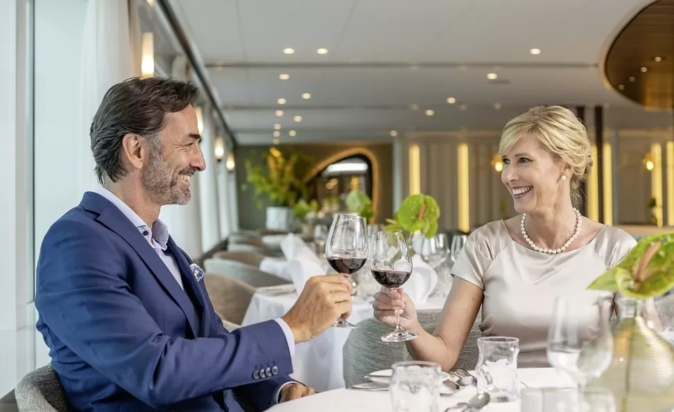 Gemide akşam yemekleri ile ikram edilen kırmızı ve beyaz şarap