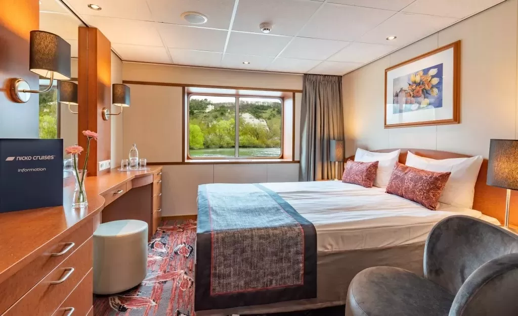 2001 Yılında suya indirilip 2019 yılında tamamen yenilenen Nicko Cruises firmasına ait 4*Superior Nehir gemisinde, 7 gece tam pansiyon konaklama (Tam pansiyon dahilinde ki servis gemiye biniş günü Akşam yemeği ile başlayıp, gemiden iniş günü kahvaltı ile son bulmaktadır)