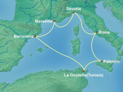İstanbul Sabiha Gökçen Havalimanı Dış Hatlar gidiş terminali Pegasus Hava Yolları kontuarı önünde saat 07:30 buluşma. Pegasus havayolları PC 1211 sefer sayılı uçağı ile saat 09:40 da Bergamo’ya hareket. Yerel saat ile 10:30 varışımızın ardından bizi bekleyen otobüsümüze biniyoruz ve Savona limanına doğru yola çıkıyoruz. Check in işlemlerinin ardından kabinlere yerleşme için serbest zaman. Gemimiz 17:30’da limandan ayrılacaktır.